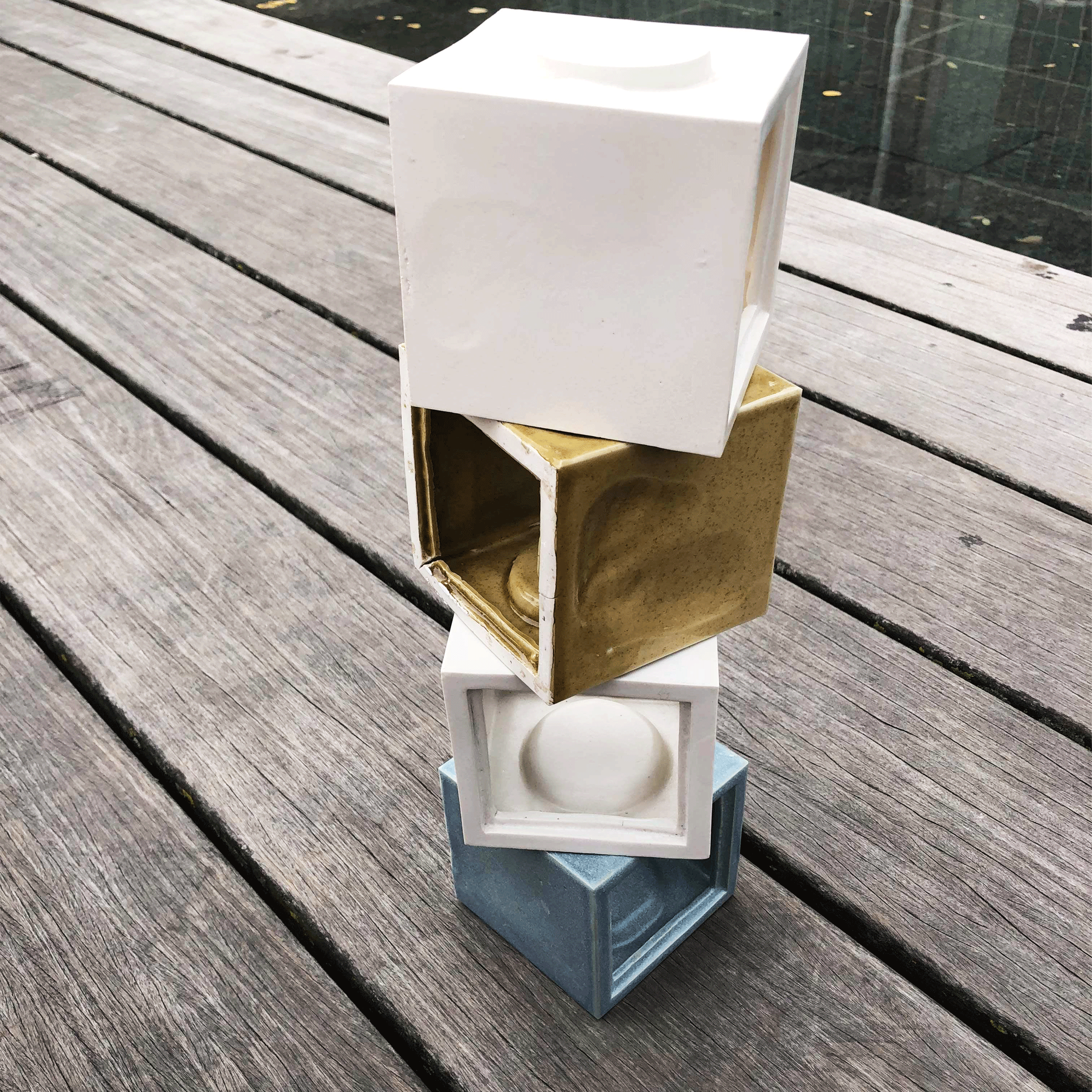 1. 陶瓷可以具有結構性嗎? 類似Lego的想法我實驗了這樣有別於平面磁磚的方式,而是將陶瓷3D立體化,試想著有沒有可能變成一堵牆 ?
